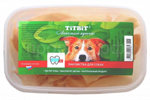 Высушенные основания говяжьих ушей (внутренняя часть раковины, обрамленная кольцом мышечной ткани). Высокое содержание коллагеновых и эластиновых волокон обеспечивает поступление в организм незаменимых компонентов для роста и поддержания качества хрящевой ткани суставов Вашего питомца. Высокое содержание коллагена и эластина способствует улучшению формирования ушного хряща для пород собак, стандартом которых предусмотрен вертикальный постав ушной раковины.